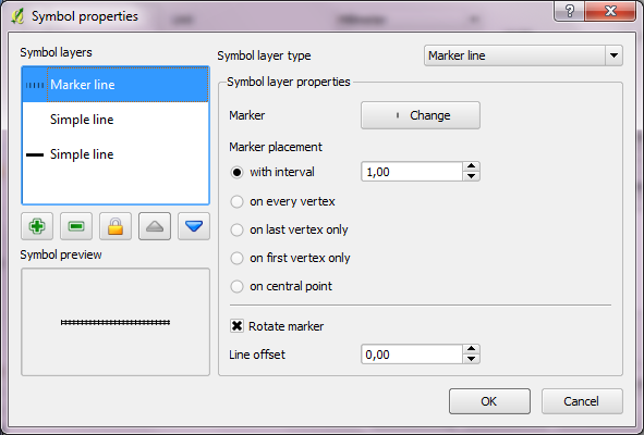 Using ‘Marker Line’, we can also create nice looking railway styles. The ‘sleepers’ are created using vertical line markers at certain intervals.
