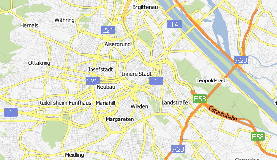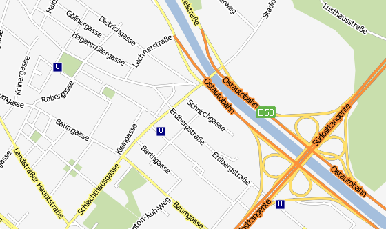 Zoomed in, more labels will be displayed and an additional layer with metro stations becomes visible. The metro symbol was created using the same technique described for the road shields.