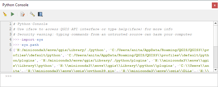 ['H:/miniconda3/envs/qgis/Library/./python', 'C:/Users/anita/AppData/Roaming/QGIS/QGIS3\\profiles\\default/python', ... ]