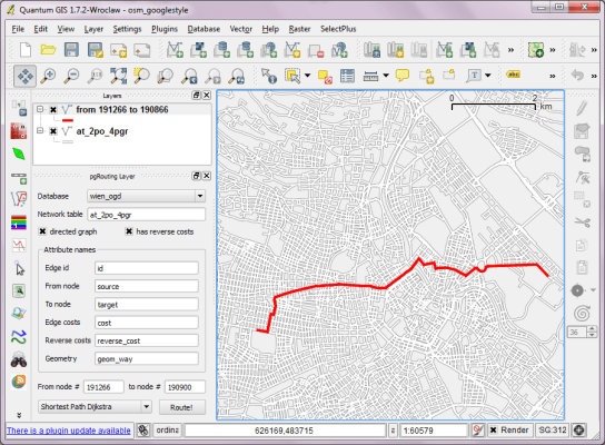 For this example, I’m using the public transport network of Vienna which is loaded into a pgRouting-enable database as network.publictransport. To create the routable network run: