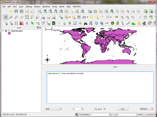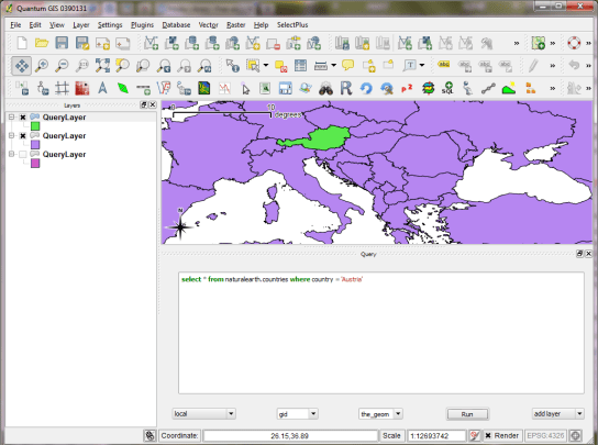 This is where “Fast SQL Layer” can be a real time saver. Fast SQL Layer is a new plugin for QGIS by Pablo T. Carreira. It basically adds an SQL console for loading layers from PostGIS/SpatiaLite into QGIS. And it even comes with syntax highlighting!