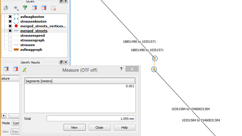 - Aufgrund von Lücken im Graphen ist es notwendig eine Toleranz von mindestens 2 Metern bei der Erstellung der Topologie zu setzen, z.B.