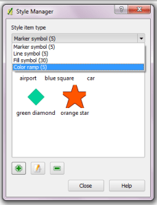 All styles: marker, line, fill and color ramps can be accessed via “Style manager”: