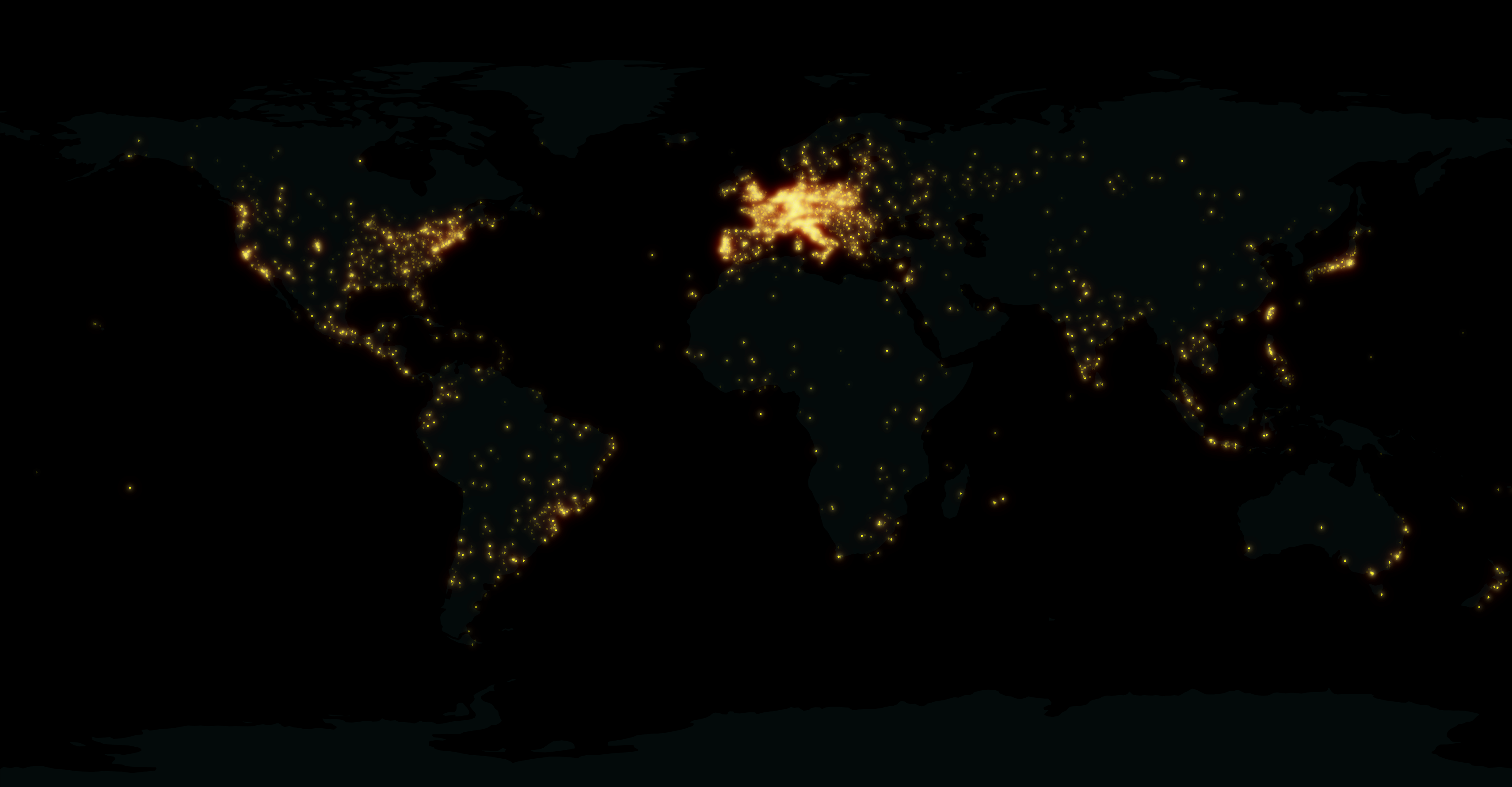 In Gimp, I applied the “glowing hot” filter to the user points and combined the layers. The trick here is to first use “Color to alpha” on the user point layer and turn black to transparent. This way, the “glowing hot” filter will only be applied to the remaining points.