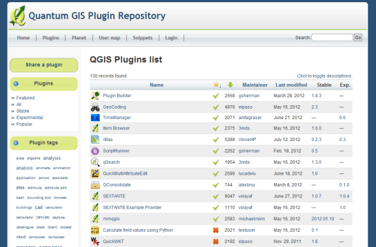 2. The new official plugin repository at plugins.qgis.org keeps everything in one place making it easier for users to find documentation and report issues. It will also provide many long-wanted features such as a rating system for plugins. You can already sort by number of downloads to discover the most popular plugins.