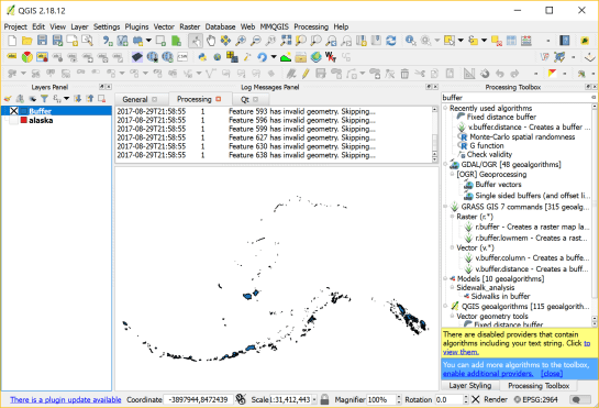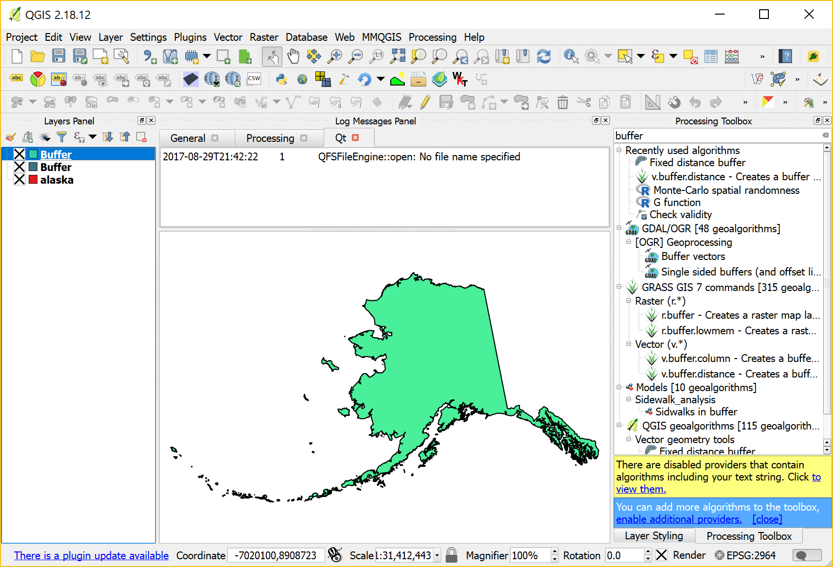 A black and white raster will appear in QGIS, also in the Layers Panel a new item was created.