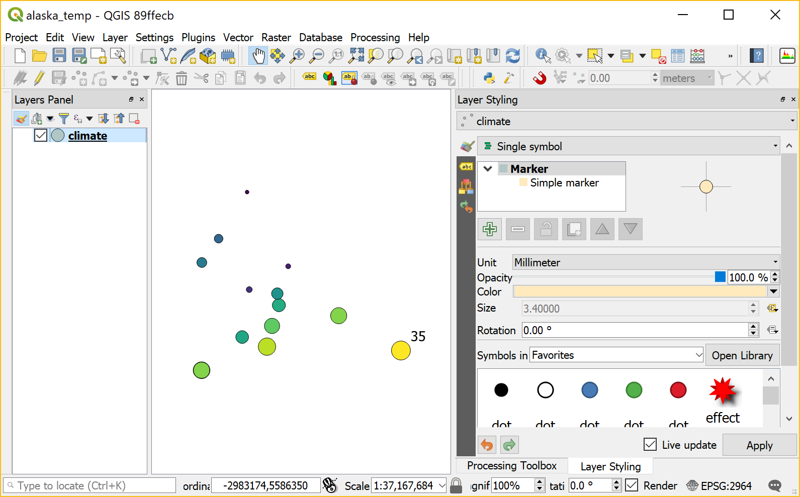 I’m also using label masks to keep the inside of the large city markers (the ones with a star inside a circle) clear of visual clutter. In short, I’m putting a circle-shaped character, such as ◍, over the city location: